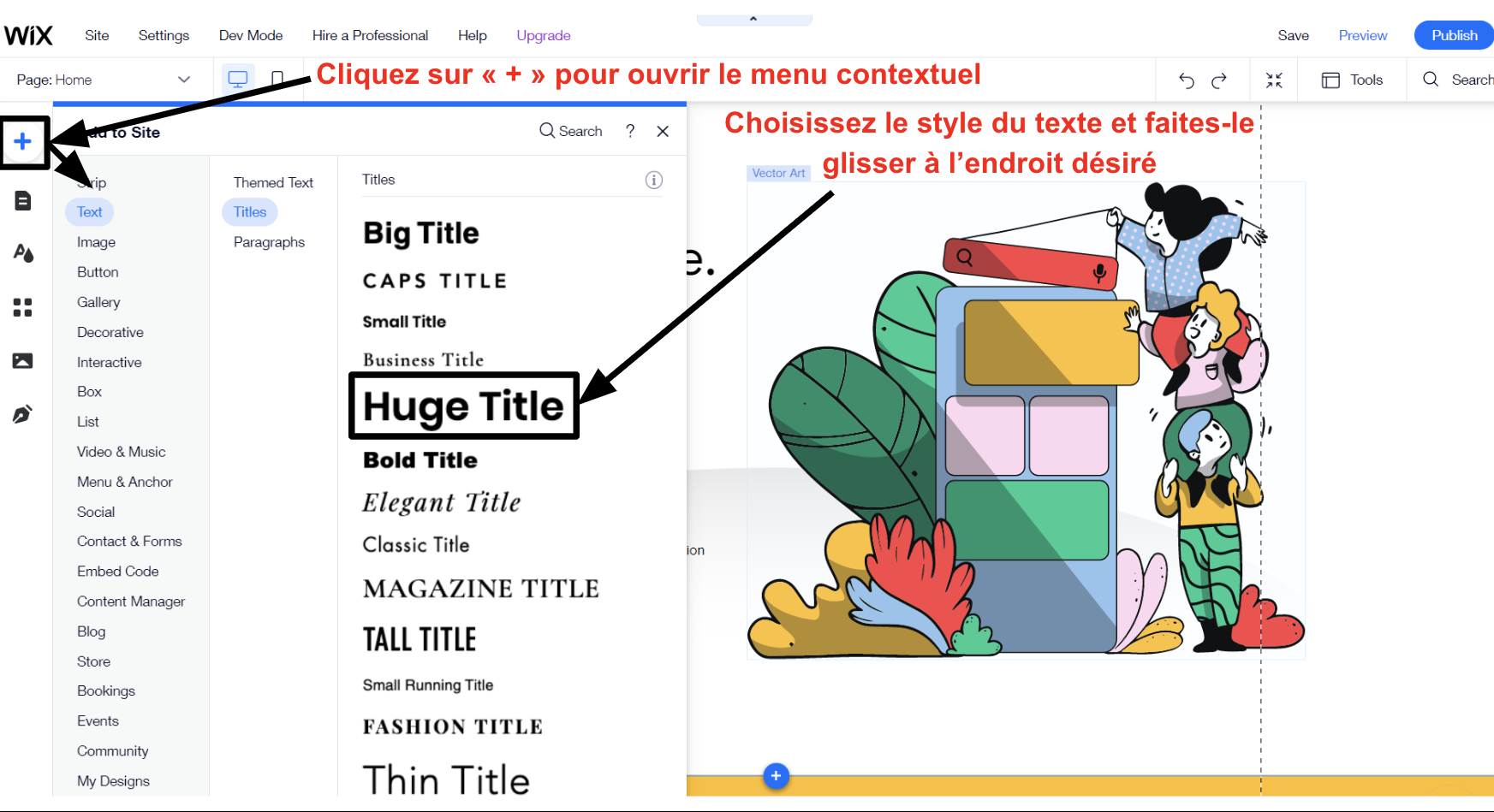 Utilisation de l’éditeur glisser-déposer de Wix pour réarranger les sections6. Ajouter votre propre contenu