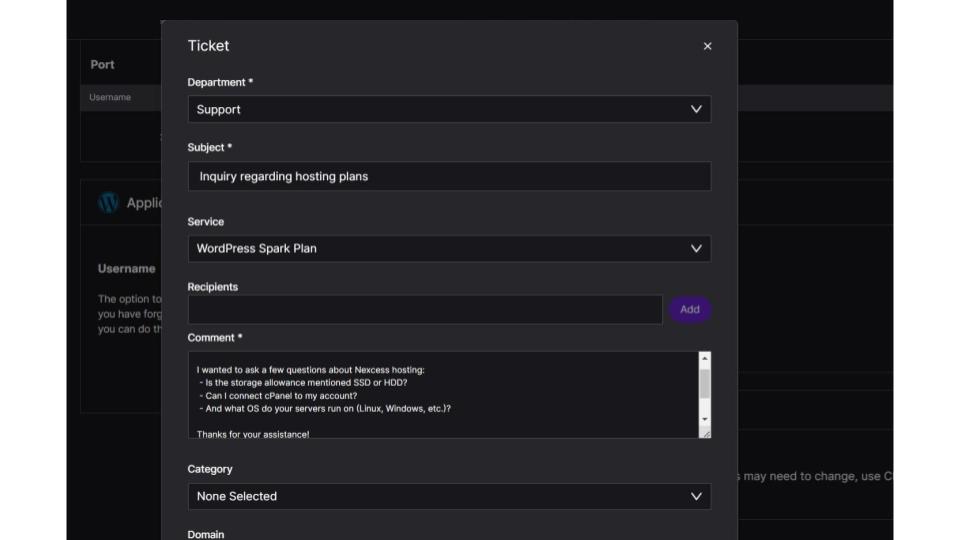 Having tested a few hosts’ ticketing systems, I was quite impressed by Nexcess ticket support. Not only did the Nexcess team get back to me just 15 minutes later, but they answered each and every question in detail.